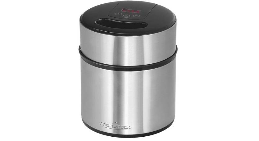 Немецкое качество модели подтверждено многими отзывами. Полуторалитровая чаша помещена в ударопрочный металлический корпус с ЖК-дисплеем и красивой подсветкой. Таймер мороженицы рассчитан на 40 минут. Крышка эргономичного устройства имеет дополнительное отверстие, благодаря которому пользователь может добавить необходимые ингредиенты уже в процессе изготовления мороженого. Это позволяет использовать даже хрупкие продукты, которые быстро размокают и деформируются от влаги, например, хлопья или рисовые шарики. Подобная начинка сделает мороженое по традиционному и проверенному рецепту вкуснее и оригинальнее. В устройстве можно готовить лед из фруктов, замораживать йогурты. Модель оптимальна для занятых людей и домохозяек, которые стремятся кормить своих близких лишь качественными и безопасными продуктами.