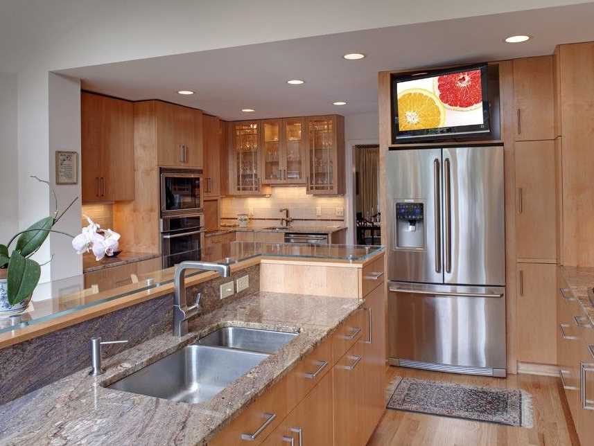 - приобретение современных моделей холодильных камер. Приобретение холодильного агрегата со встроенной плазменной панелью является оптимальным решением для кухни.