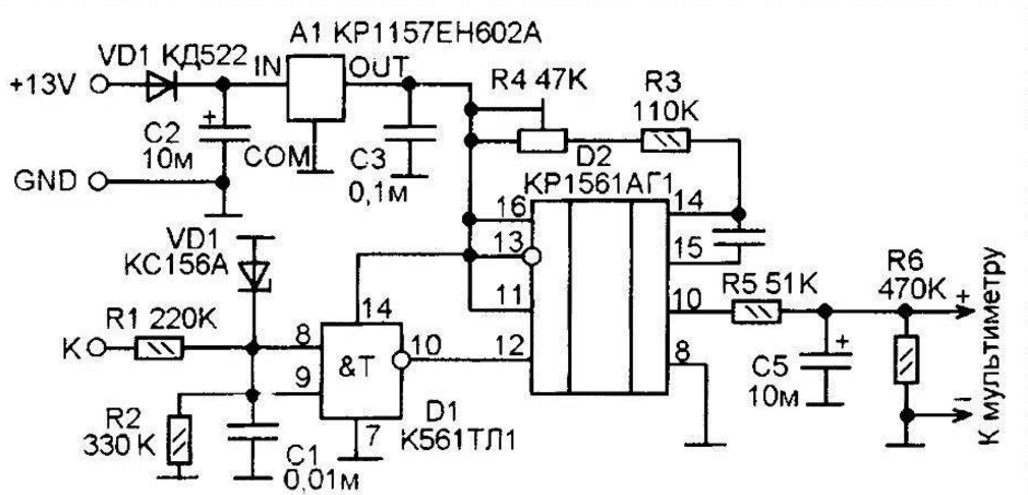 Перед замером, при закороченных контактах измерительных щупов, переменным резистором R3 выставляется ноль на шкале измерения сопротивления. Данный тестер предназначен только для измерения постоянного тока.
