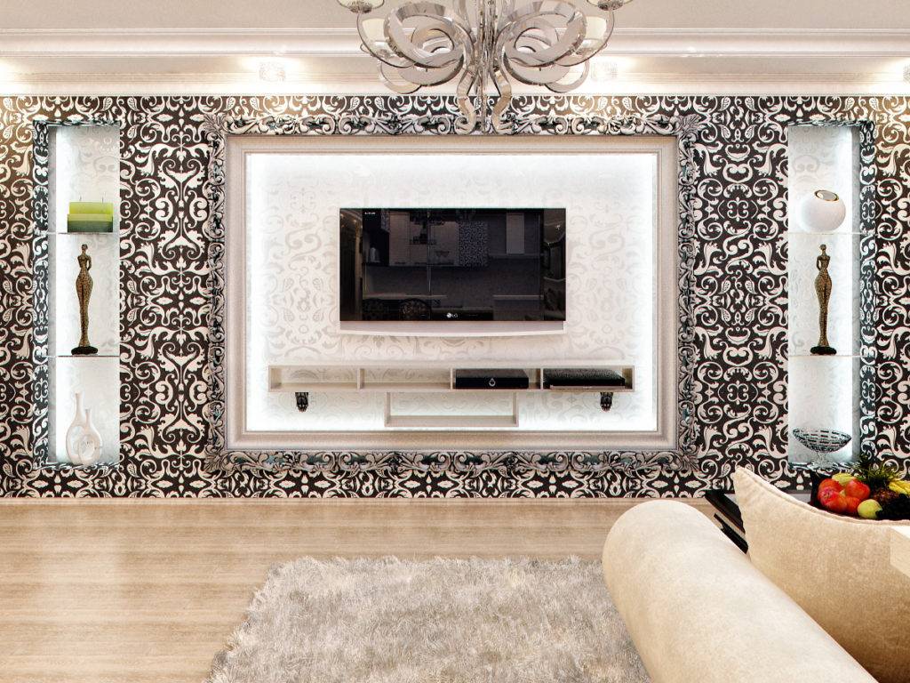 Для оформления стены с телевизором в гостиной допускается использовать следующие материалы:
