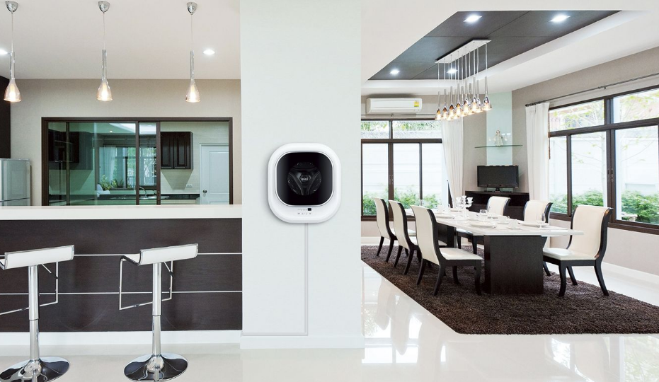 Эта модель – не просто машина для стирки белья в том понимании, к которому все привыкли. Ее отличают миниатюрные размеры – глубина чуть больше 29 см и вес около 16 кг. А главное, она монтируется прямо на стену. Причем установить ее можно в любом помещении с несущими стенами без пустот и на удобной для загрузки белья высоте. Все требующиеся для монтажа крепежные детали поставляются в комплекте с машинкой.
