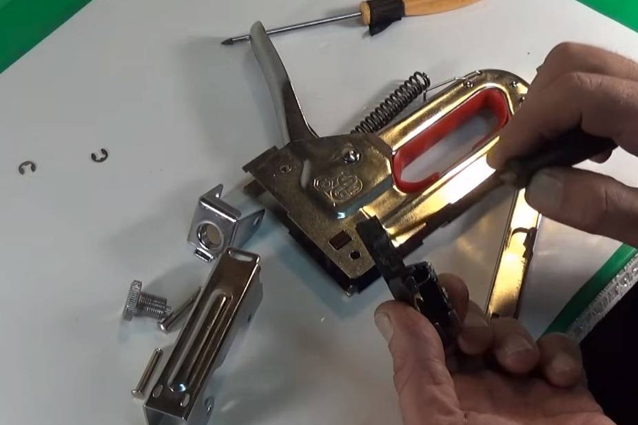 Бывает такое, что на ударном механизме может отколоться упор, в который упирается пружина. В этом случае поможет только сварка, и то не факт, что инструмента в таком случае хватит надолго. В итоге приваренный упор все равно отвалится и вам придется покупать новый степлер.