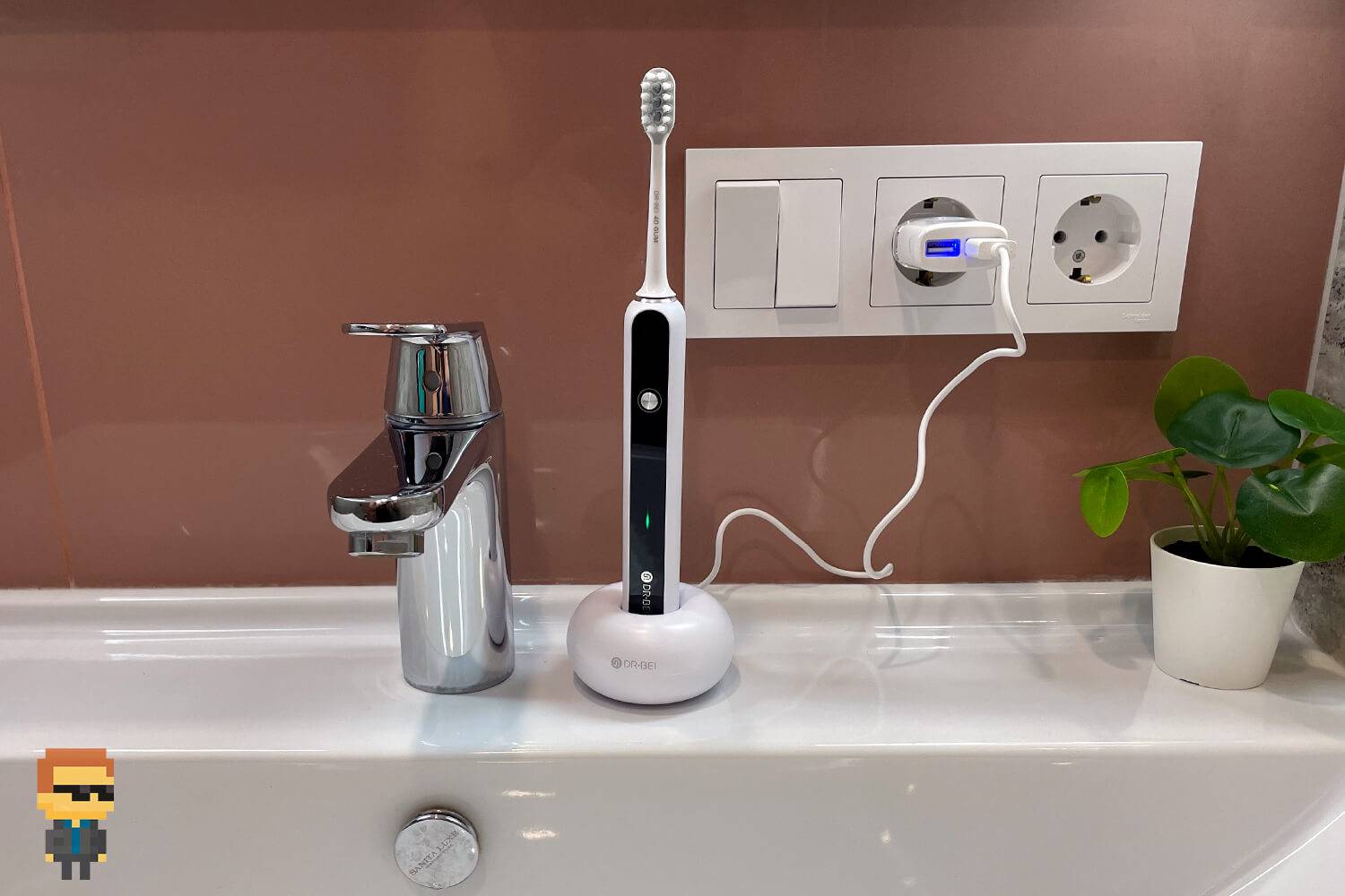 DR.BEI S7 можно мыть как привычную мануальную. Этот момент следует отметить в самом начале обзора. Ведь многие пользователи сомневаются в том, что станут пользоваться зубной щеткой, корпус которой надо беречь от воды.