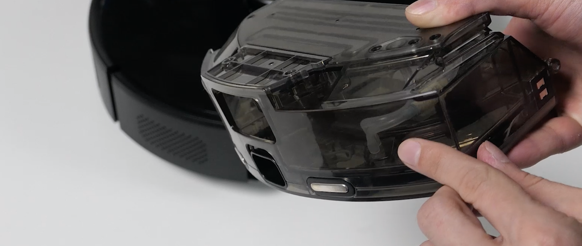 Швабра с микрофиброй пристёгивается снизу. В заднюю стенку рабочего модуля вмонтированы клеммы для зарядки и стыковочный люк, через который осуществляется самоочистка.