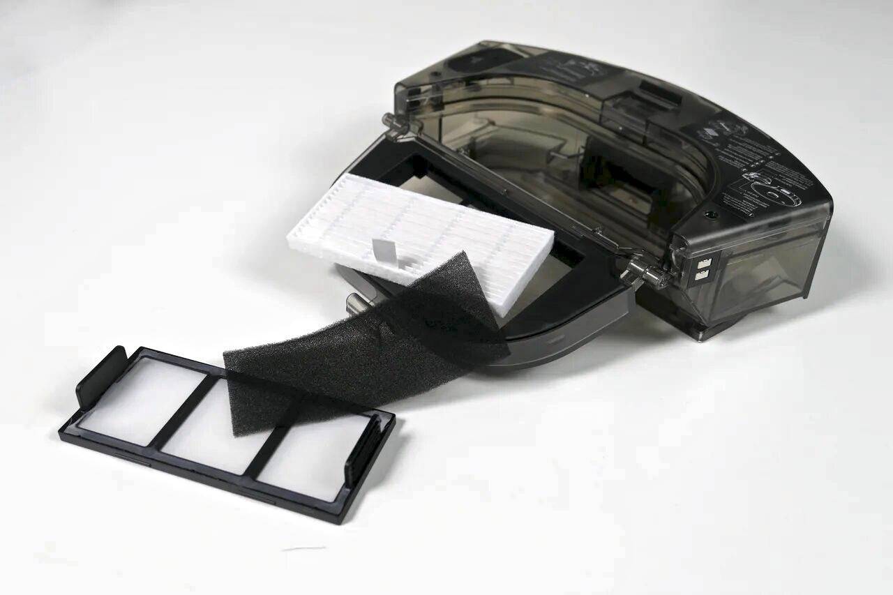 Из верхней стенки вынимается рамка с сеткой, а следом за ней – поролоновая прокладка и НЕРА-фильтр.
