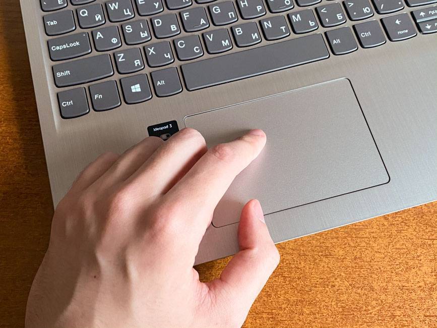 Тачпэд Lenovo IdeaPad 3 15IIL05 относительно компактный, палец неплохо скользит по его покрытию. Но мне показалось, что он по умолчанию недостаточно чувствительный, что легко регулируется в настройках. В остальном нормально — жесты распознает, точность хорошая.