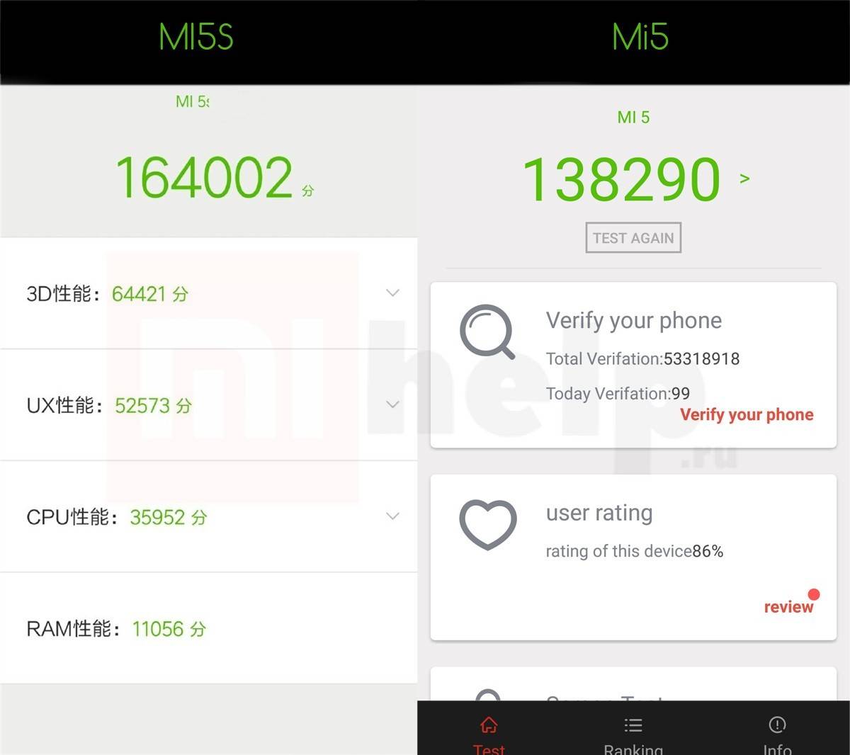 Исходя из результатов тестов предыдущей модели Mi5 с процессором Snapdragon 820 (1.8 ГГц), который набрал в графическом тесте AnTuTu около 84000 балов, можно с уверенностью сказать, что обновленная модель с индексом «s» обладает очень высокой производительностью, достаточной для самых тяжелых современных игр, не говоря уже о других задачах. Это подтверждается и результатами независимых тестов, где Mi5s набирает около 102000 балов.