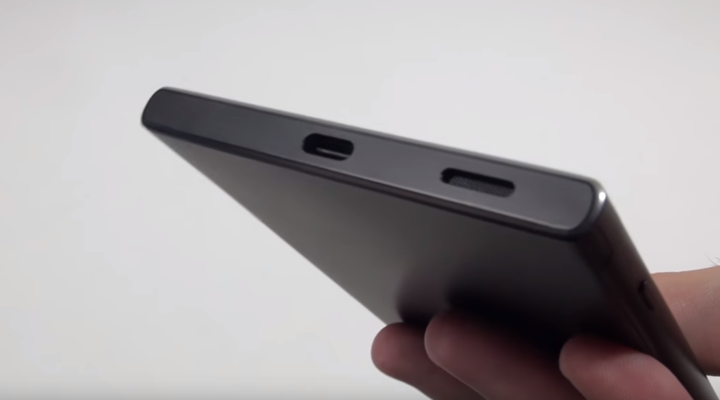 Сверху у Sony Xperia XA1 находится разъём для наушников 3,5 мм и микрофон шумоподавления. Снизу — разъём USB Type-C. Верхний и нижний торцы абсолютно плоские