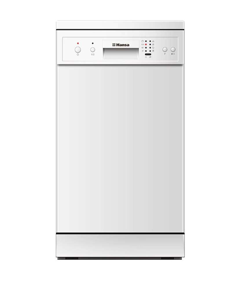 Hansa ZWM 446 IEH – узкая посудомойка, рассчитанная на 10 комплектов посуды. При габаритах (ШхГхВ) 45 x 60 x 85 см она отлично впишется в современную кухню, а серебристый цвет придает ей стиль. В данной машине при обычном режиме посуда будет вымыта примерно за 150 минут. Всего насчитывается 6 программ, в том числе автоматическая мойка с определением степени загрязнения посуды. Радует уровень шума, который составляет всего 45 Дб. Есть дисплей, защита от протечек и за все это придется заплатить всего около 25 тыс. рублей.