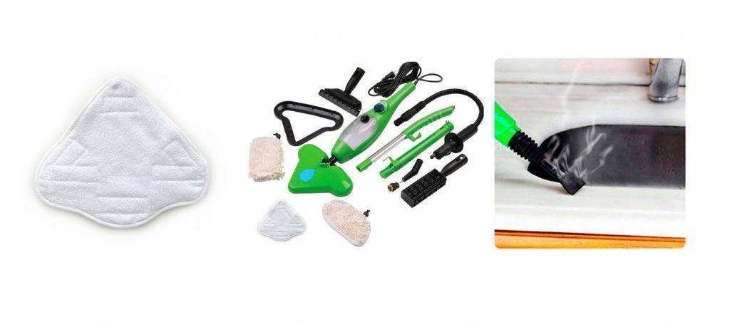С помощью швабры легко очищают полы от загрязнений. Любые поверхности отпаривают без использования химических средств. Хорошо отпаривают одежду и текстильные изделия с помощью специальной насадки.