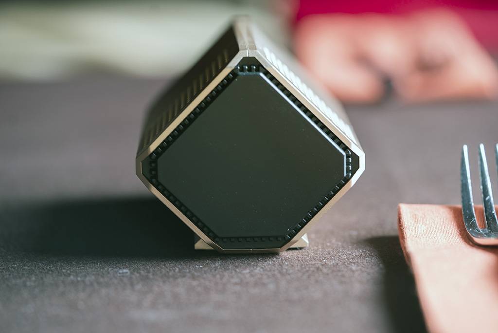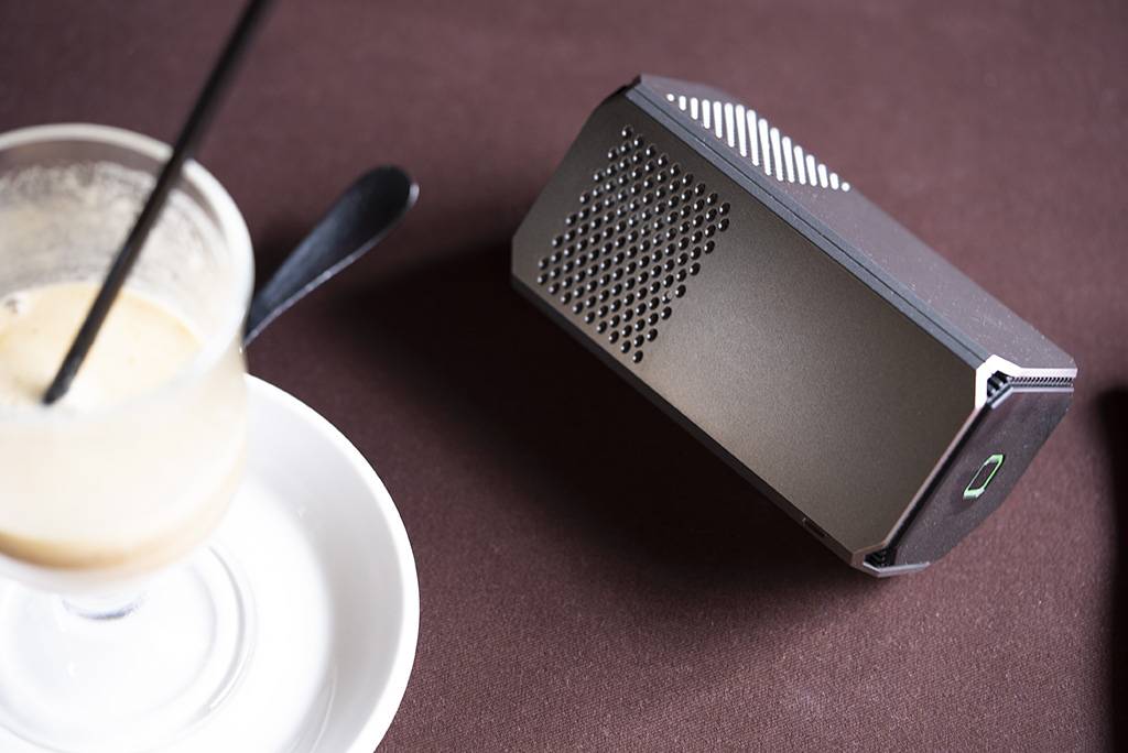 Сам девайс выглядит эффектно и даже немного футуристично. В форме ромба с большим количеством отверстий для подачи и очистки воздуха, а также с подставкой из прорезиненого материала. Последнее приятно удивляет: не думаешь о том, где конкретно стоит PlazmaBox, скользить не будет.