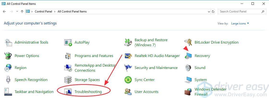 1) Открыть Панель управления в свой ноутбук и щелкните Поиск проблемы .