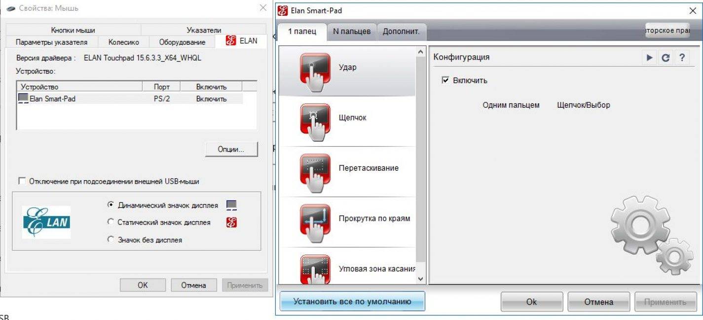 Если она неактивна – необходимо ее активировать. Для этого достаточно убрать галочку с пункта «отключение при подсоединении внешней USB-мыши».