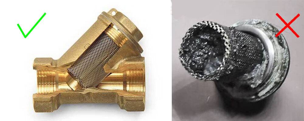 Прочистить фильтр можно сильным напором воды. Перед проведением любых ремонтных работ, следует перекрывать подачу воды и газа к оборудованию.