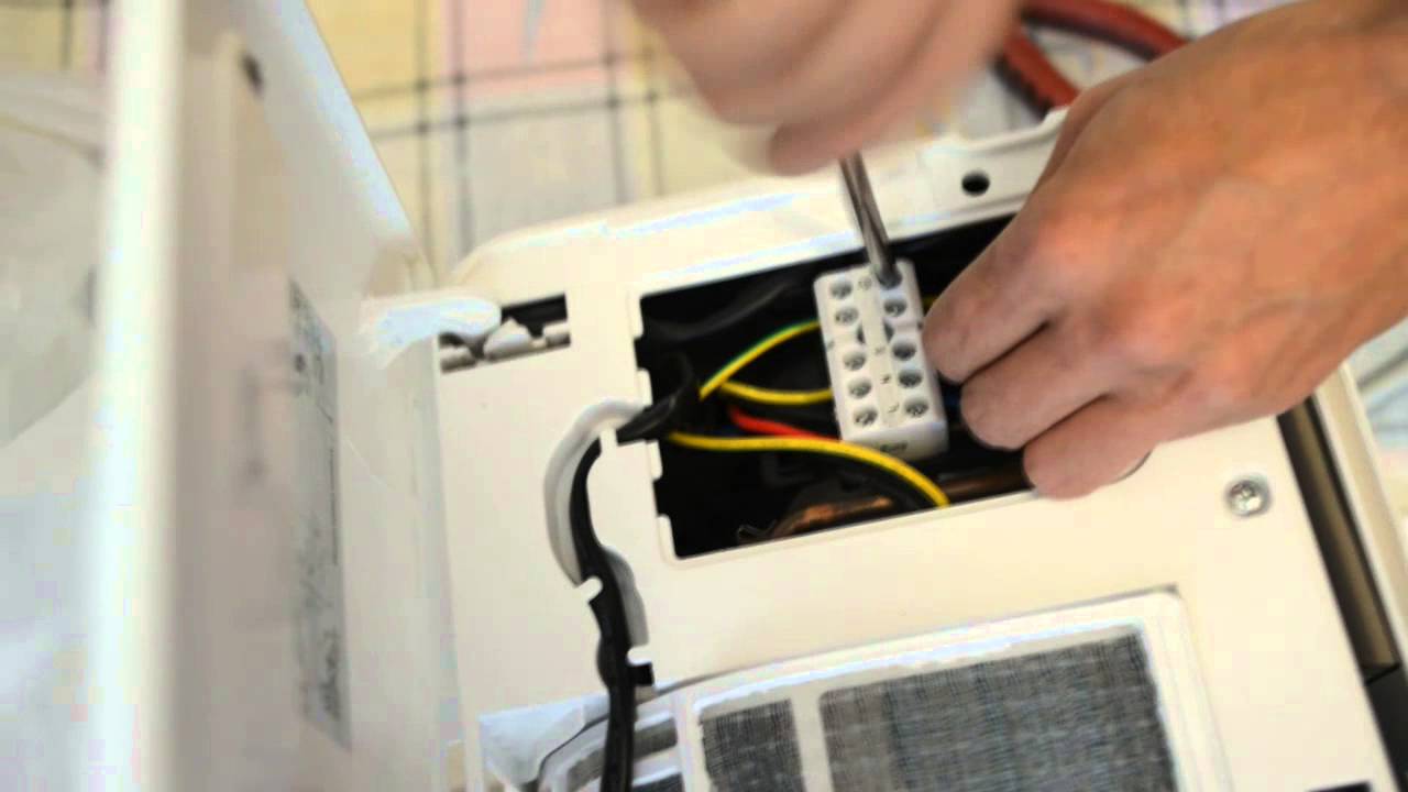 При подключении кондиционера к питающей сети важно помнить, что автоматический выключатель должен иметь расстояние между контактами в разомкнутом состоянии не менее 3 мм для каждого фазного провода. Строго соблюдают фазность: порядок подключения фаз должен соответствовать порядку на клеммной колодке