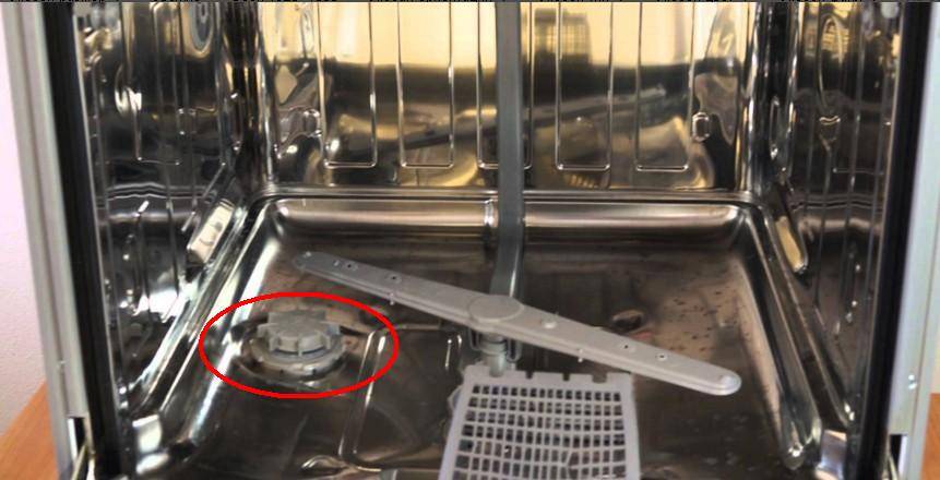 - Засорение форсунок. Разбрызгиватели не могут штатно распылять воду внутри камеры. Чтобы справиться с проблемой, возьмите зубочистку и прочистите форсунки. Засор разбрызгивателей может привести к снижению напора в системе и некачественной очистке посуды. Забегая немного вперед, следует обговорить, что если не происходит вращение коромысла, в первую очередь рекомендовано проверять циркуляционный насос.