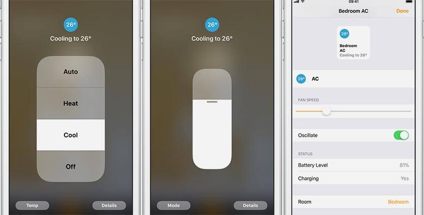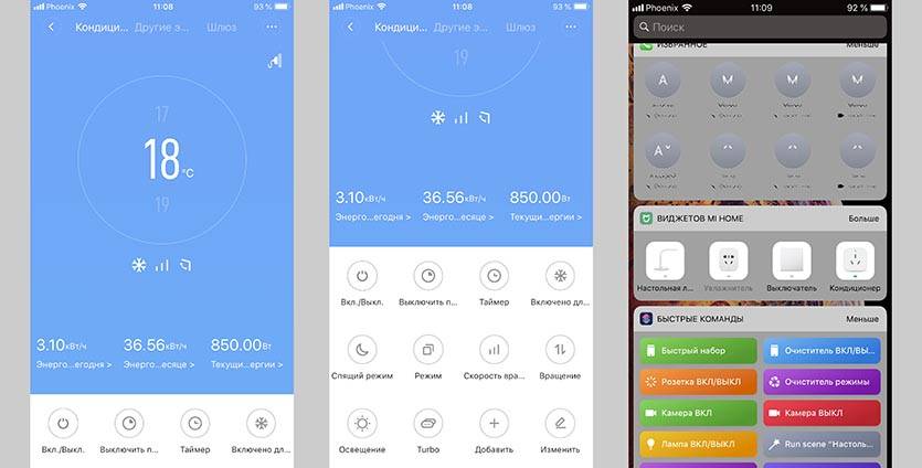 Интерфейс управления кондиционером в Mi Home и виджеты для управления гаджетами