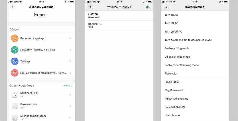Теперь в приложении Mi Home мы можем задать время включения и отключения для гаджетов при помощи самого простого сценария автоматизации.