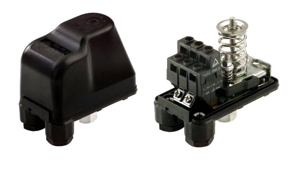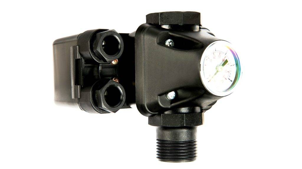 Для фиксации агрегата используется пружинная группа давления в конструкции. Замыкание контакта происходит при достижении минимального показателя давления. После этого происходит включение в автоматическом режиме. В момент, когда будет достигнут максимальный коэффициент (установленный пользователем), насосная установка выключится, так как контакты разомкнутся. Конструкция оснащена специальными регулировочными механизмами, которые позволяют вручную отрегулировать значение.
