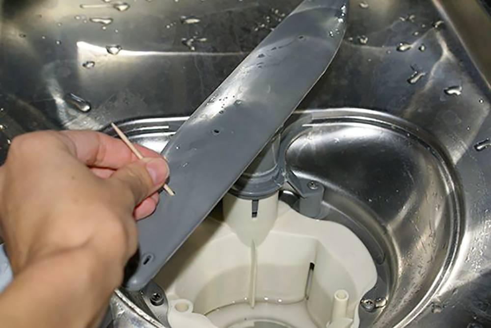 Фильтры и мелкие отверстия в различных деталях машины забиваются из-за того, что пользователь плохо очищает тарелки перед загрузкой в бункер. Для устранения этой неприятности необходимо снять детали и промыть их под струей воды. Убрать мелкий мусор из отверстий можно с помощью зубочисток.