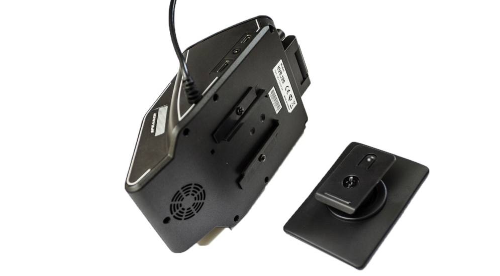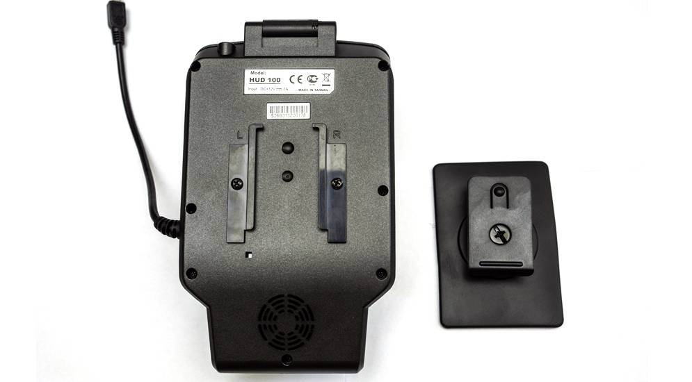 Установить Rivotek HUD 100 в рабочее положение было несложно. Опора с креплением на клейкой резине крепится на торпедо, надежно фиксируясь на поверхности любой фактуры. Опора соединяется с корпусом через шаровый шарнир, который позволяет регулировать угол проецирования в пределах 15 градусов во все стороны, направляя луч точно на отражающий экран или пленку (ее мы и решили использовать). Пленка приклеивается к лобовому стеклу за счет нанесенного на нее слоя, который впоследствии не оставляет следов (что проверено).