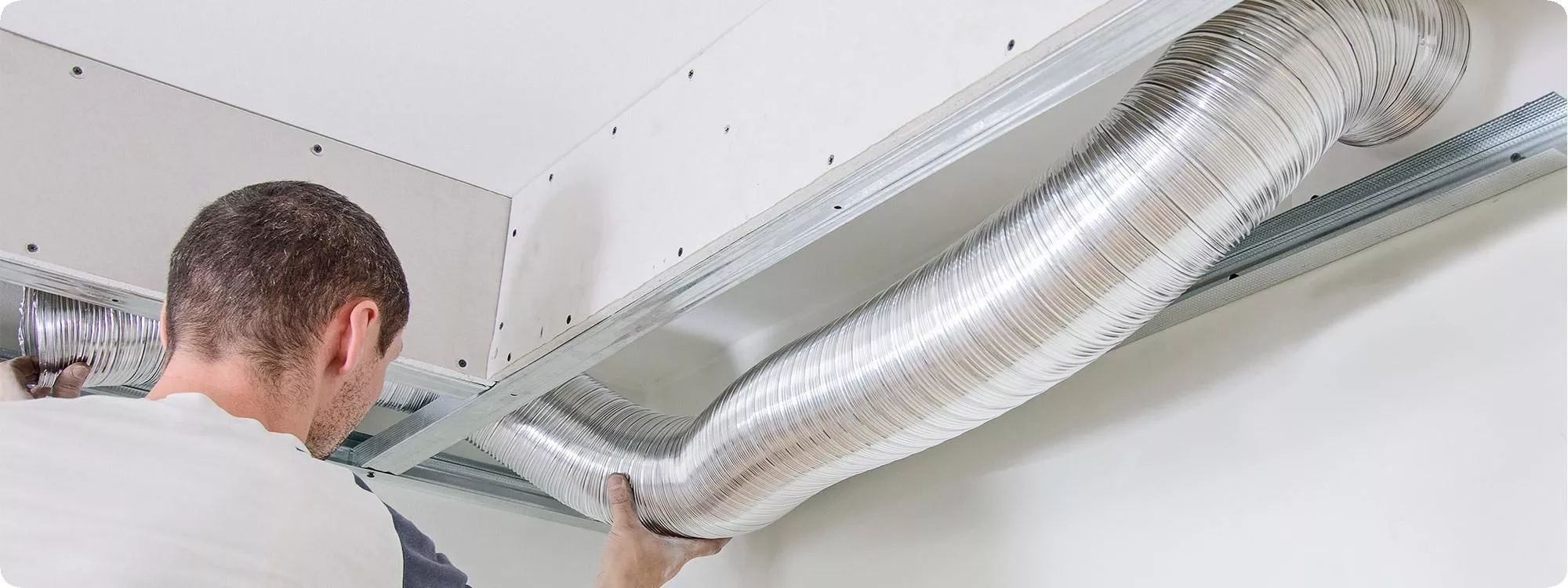 Воздуховод собирают из пластикового короба или выполняют из алюминиевой гофры. Первый вариант прочнее, эстетичнее и надежнее. Поэтому стоит отдать ему предпочтение. Пластик легко пилится и соединяется специальными элементами. Дополнительную прочность соединениям придают с помощью герметика. У гофры также есть свои преимущества – ее гибкость позволяет уложить воздуховод по изогнутой траектории.