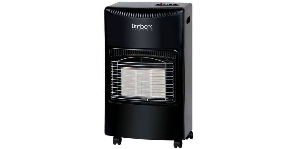 Открывает рейтинг модель компании Timberk, имеющая минимальную мощность 1,55 кВт и максимальную 4,2 кВт. Она рассчитана на обогрев помещения площадью до 60 м². Топливо — пропан, бутан. Расход газа — 0,31 кг/ч. Внутри прибора может поместиться газовый баллон до 15 кг (его нужно приобрести отдельно). Три уровня силы нагрева. Обогреватель имеет функцию инфракрасного обогрева, систему контроля уровня СО2, систему отключения при опрокидывании, газ-контроль и пьезорозжиг. В комплект поставки входят редуктор и газовый шланг. Все переключатели находятся в верхней части корпуса, поэтому возможен быстрый доступ к настройкам.