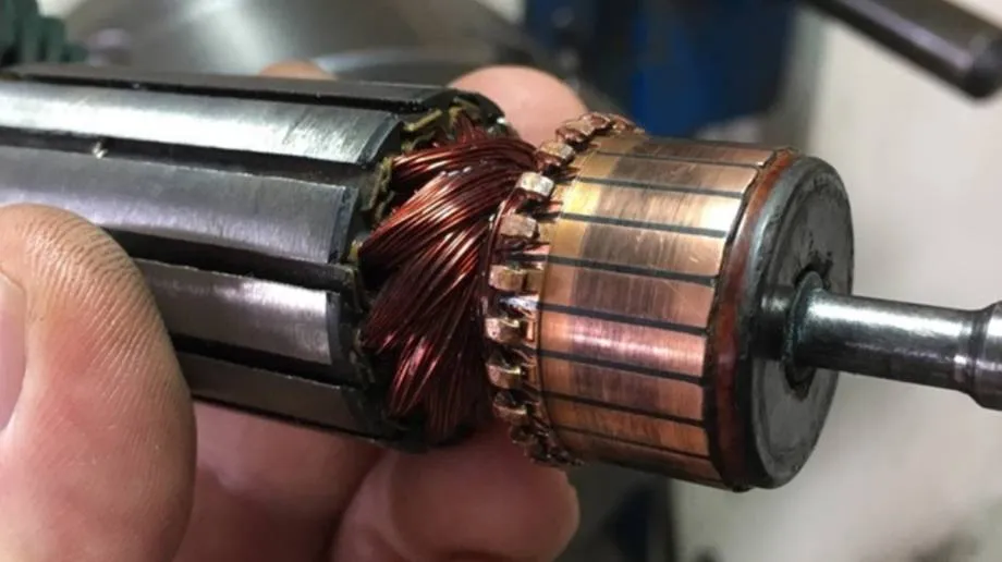 - Повреждение обмотки якоря: обрыв одной или нескольких секций обмотки, межвитковое замыкание. При таких поломках появляется повышенный шум, падают обороты двигателя и горят щетки.