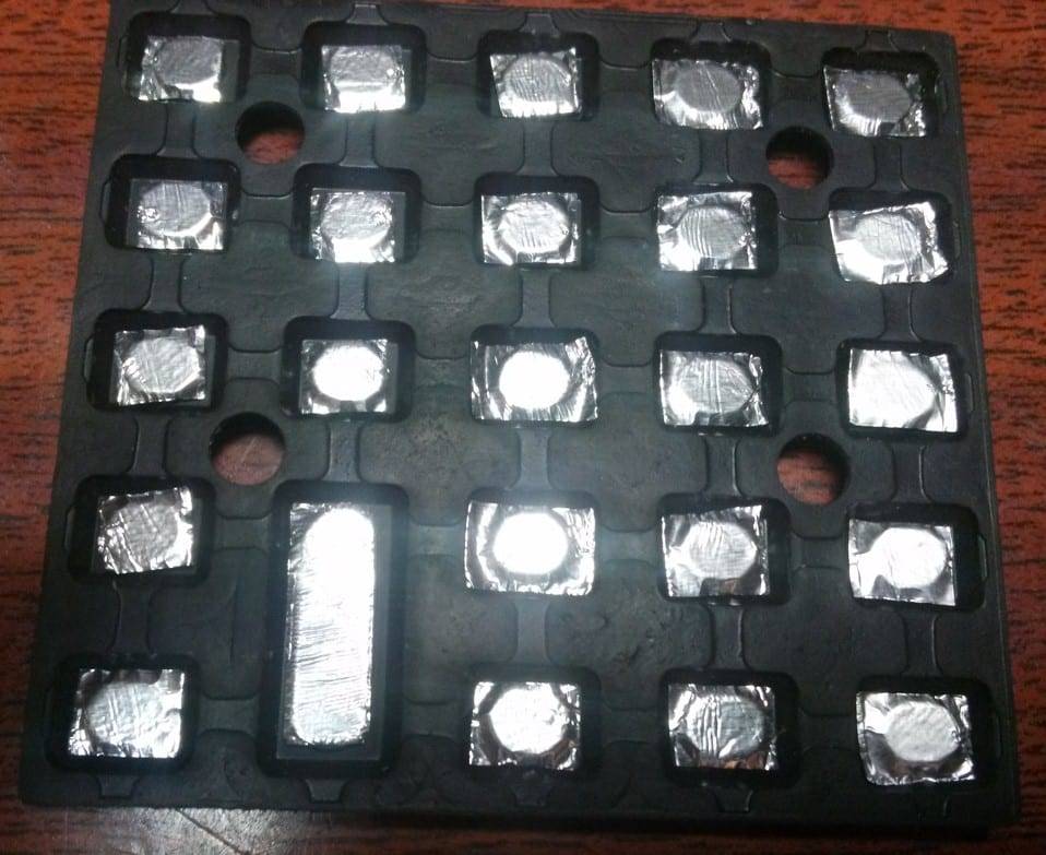 - Вырезаем из фольги круг, квадрат, соответствующий форме кнопки.