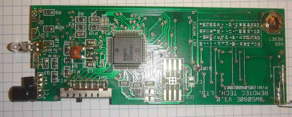 Плата электроники состоит из набора электронных деталей, присущих любому пульту ДУ:
