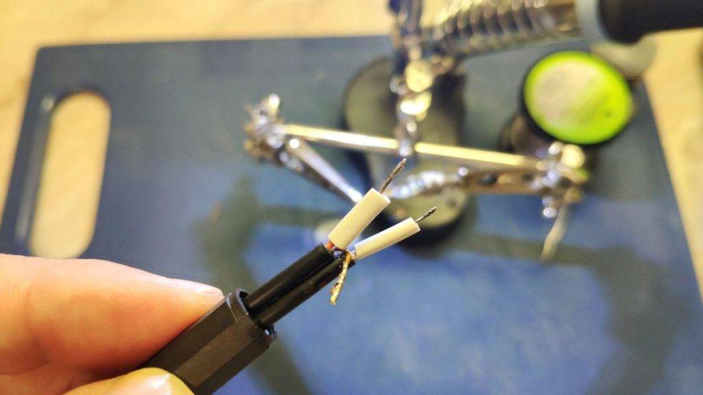 - Если есть порванные кабели, их нужно будет спаять друг с другом.