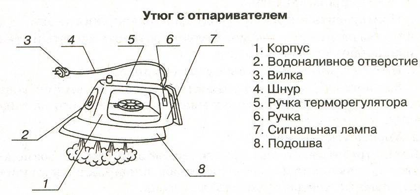 Утюг состоит из определенных элементов, которые отвечают за определенные функции: