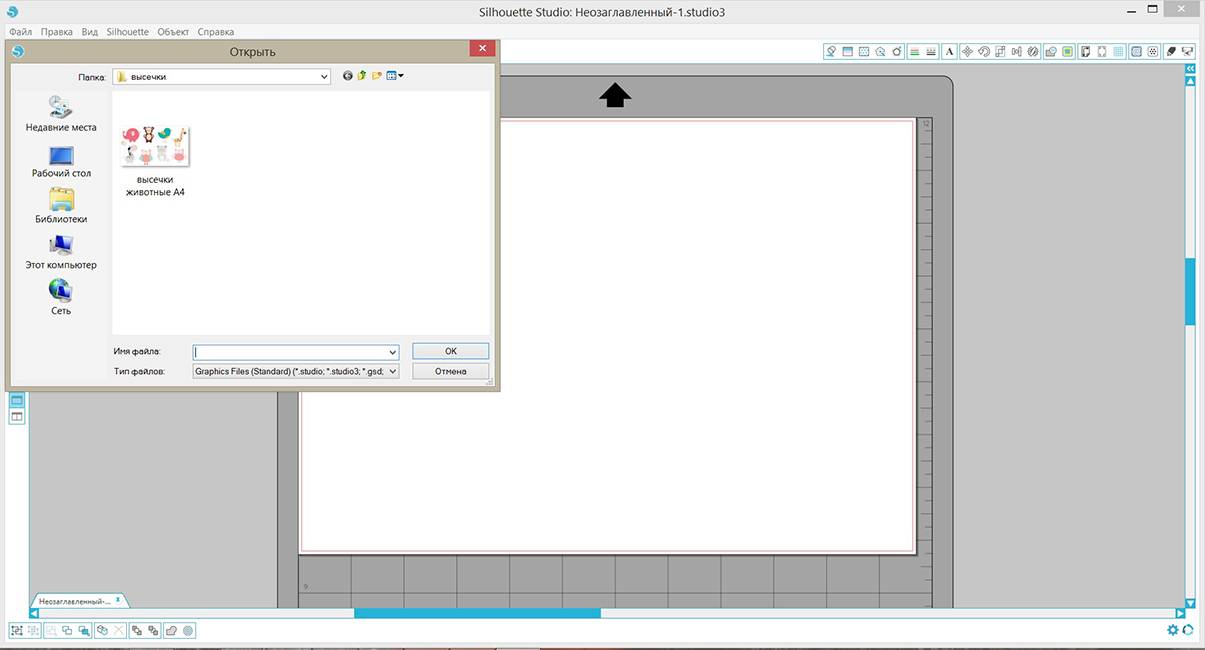- Создаем в программе Silhouette Studio новый документ и выставляем нужные размеры бумаги, ставим галочку показать границы резки.