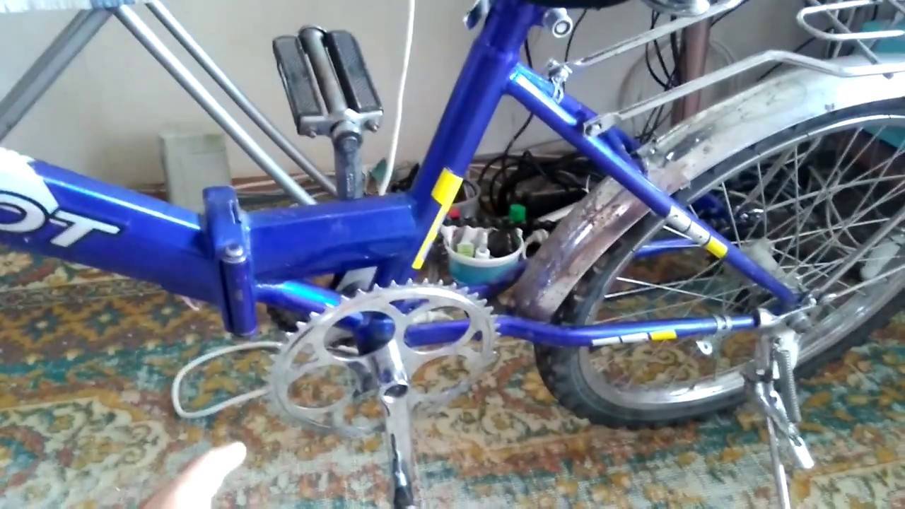 С велосипедом ничего не делали, сняли только одно колесо прикрутили гайки с болтами. Закрепили таким образом заднюю части на колеса. Теперь достаточно снять болты и электровелосипед разделяется. Достаточно 5 — 10 минут, чтобы вернуть ему прежний вид. Звездочка большая, чтобы снизить обороты. Цепь. Втулка и стойки. Последние крепятся, что позволяет натянуть цепь.