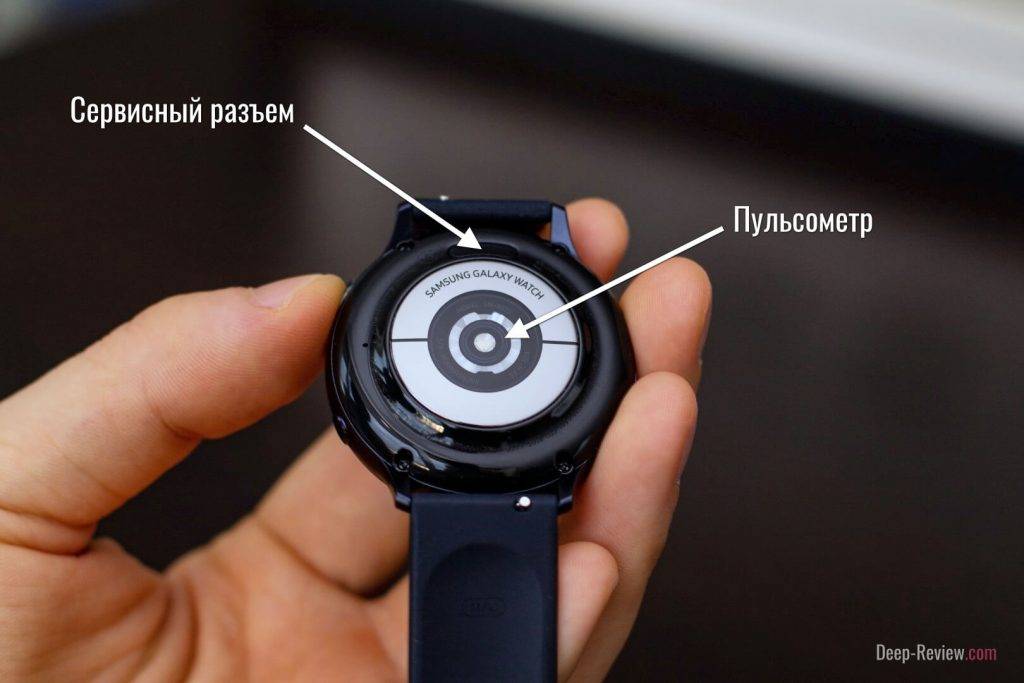 На тыльной стороне часов расположился датчик Samsung BioActive. Именно он отвечает за всё, что касается мониторинга состояния организма. Сенсорный блок почти не выпирает и имеет чуть покатую форму: дискомфорта не возникает даже при плотном затягивании ремешка.
