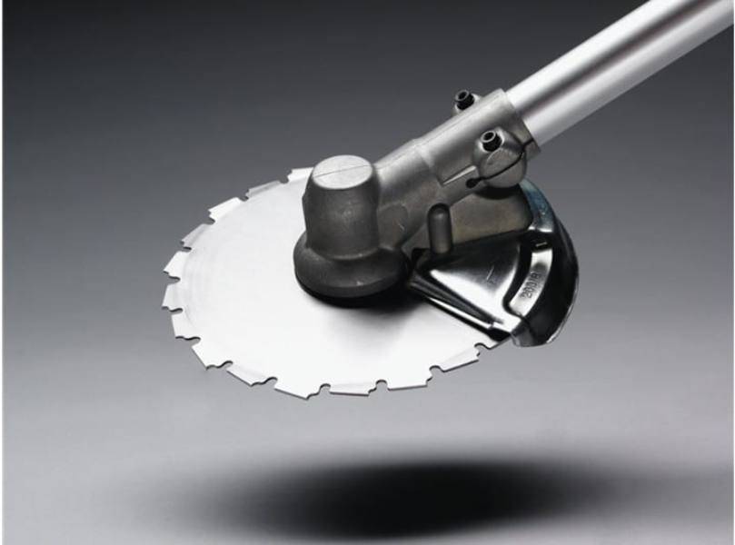 Использование стального диска, для триммера позволяет срезать не только жесткие стебли сорняков, но и лозняк, и мелкие побеги деревьев