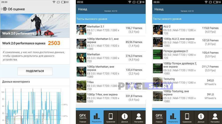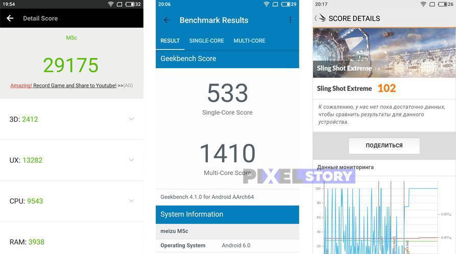 Сложные 3D-игры уровня Real Racing 3 / World of Tanks / Modern Combat 5 / GTA San Andreas Meizu M5c тянет, но, конечно, без высокодетализированной графики в них. Также вы наверняка встретитесь с частыми фризами и всяческими подтормаживаниями. И это совершенно нормально — здесь нет ни производительного процессора, ни большого объема оперативной памяти, чтобы «кушать» такие тяжелые ресурсы.