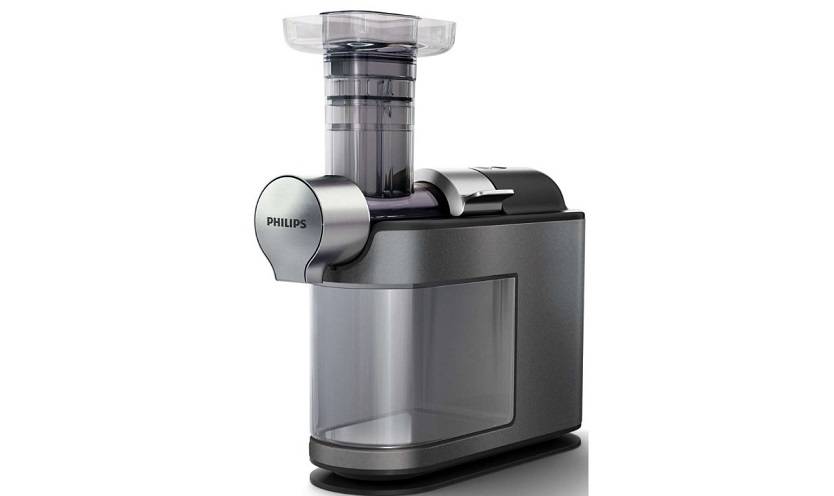 - Тихая и удобная в управлении соковыжималка Philips HR 1858 50 производит отличный отжим фруктов и овощей. Отличается современным дизайном и отсеком для шнура питания, длиной 1,2 метра. Объем стакана для соков — 1,25 л; для отходов – 2 л. Корпус сделан из пластика, фильтр – стальная сетка. Работает на 2-х скоростях. Мощность 650 Вт. Ориентировочная стоимость: 4500—5330 рублей.