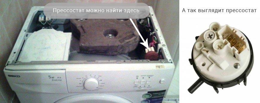 Прессостат определяет количество воды в барабане, а также давление жидкости.