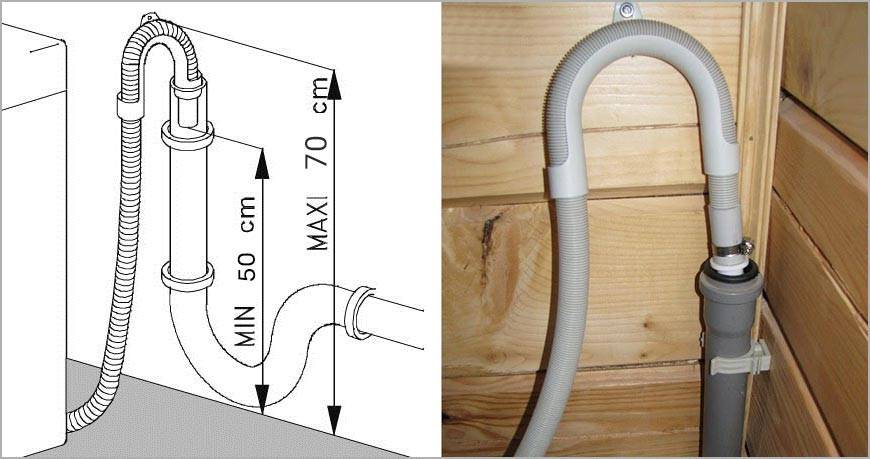 - Установка сливного шланга на высоте 0,5-1 м от пола.