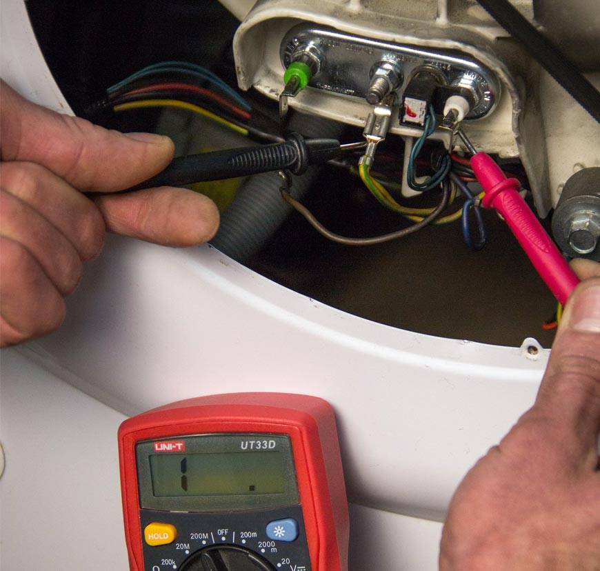 Одна из самых распространённых поломок, вызывающих отсутствие нагрева воды в стиралке – поломка нагревательного элемента. Чтобы узнать об этом, понадобится тестер, с помощью которого «прозванивают» ТЭН. Если такого прибора нет, придётся обратиться к мастеру по ремонту стиральных машин.
