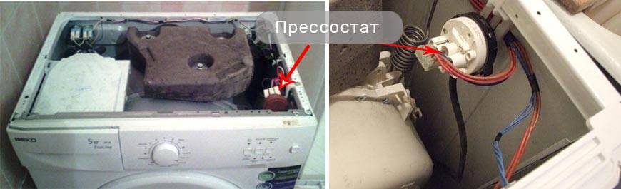 В результате работа зависает на полоскании или отжиме. Решить проблему помогает замена прессостата.