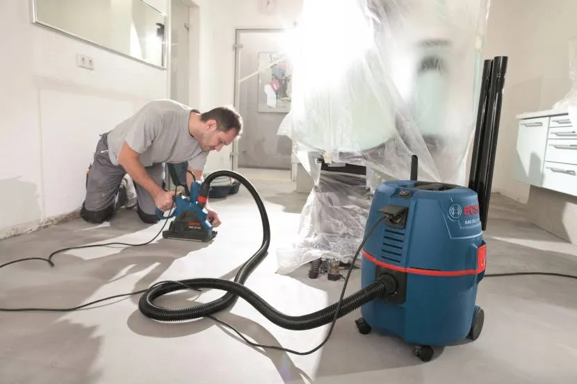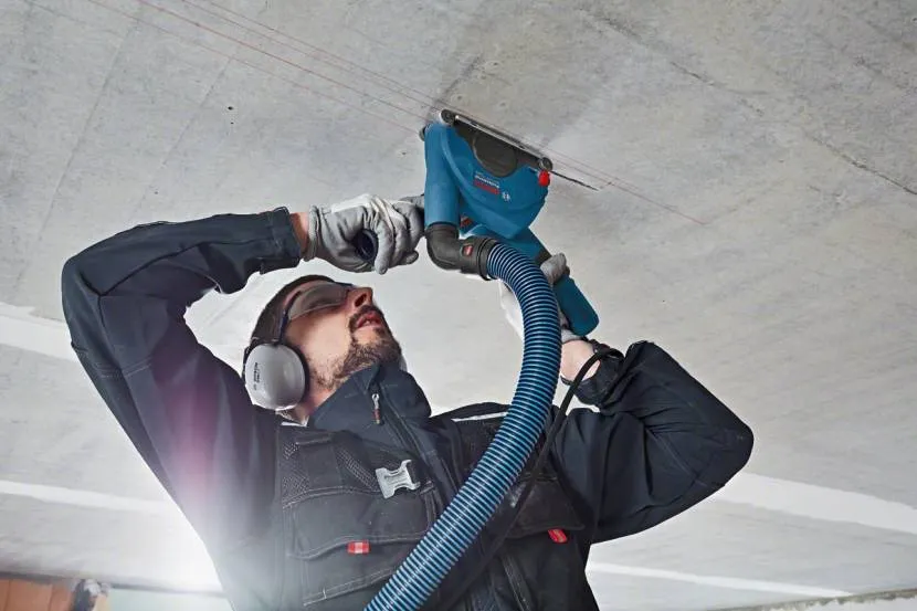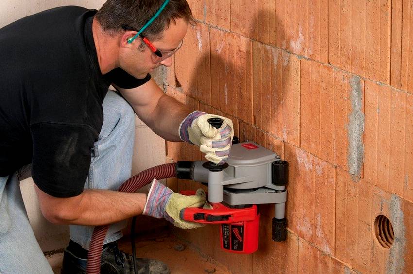 Если работа проводится в плохо проветриваемом помещении (ванная комната, санузел), то очень удобно будет использовать строительный пылесос. Его следует подключить к штроборезу при помощи специального шланга. Таким образом воздух будет всасываться вместе с образуемой пылью, из-за чего помещение не испачкается так сильно, а дышать будет значительно проще.