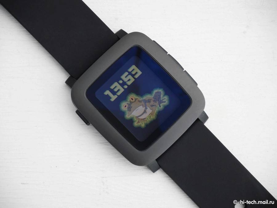 Но внутри тоже сплошной минимализм. Умные часы — аксессуар модный, но удивить внешними данными новинки своих друзей не выйдет, в представленном у нас черном цвете они выглядят неброско и просто. Ну, а маленький экранчик теряется на фоне большого корпуса с массивными рамками. В общем, это вам не Apple Watch, один ремешок для которых может обойтись дороже самих Pebble Time.