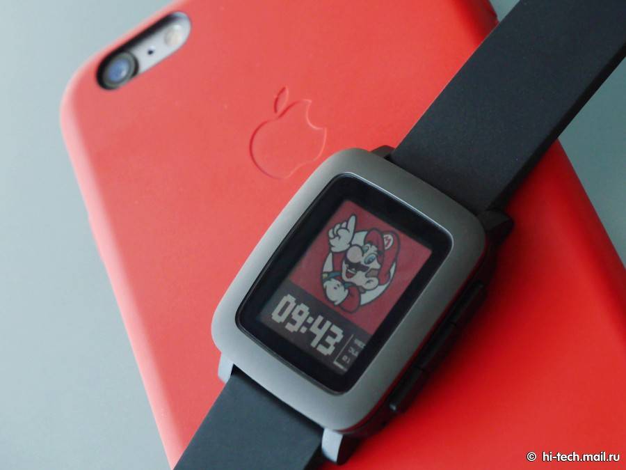 Часы в базовой версии получили силиконовый ремешок универсальной ширины 22 мм, можно выбрать какой-нибудь другой взамен стандартного. Корпус часов может быть одного из трех цветов: черным (как у нас), белым или красным. В паре с яркими ремешками можно поиграть с цветами, придумав что-то индивидуальное. Большое достоинство Pebble Time — защита от пыли и влаги. Часы выдерживают погружение на 30-метровую глубину, не говоря уже о том, что с ними и под дождем погулять можно.