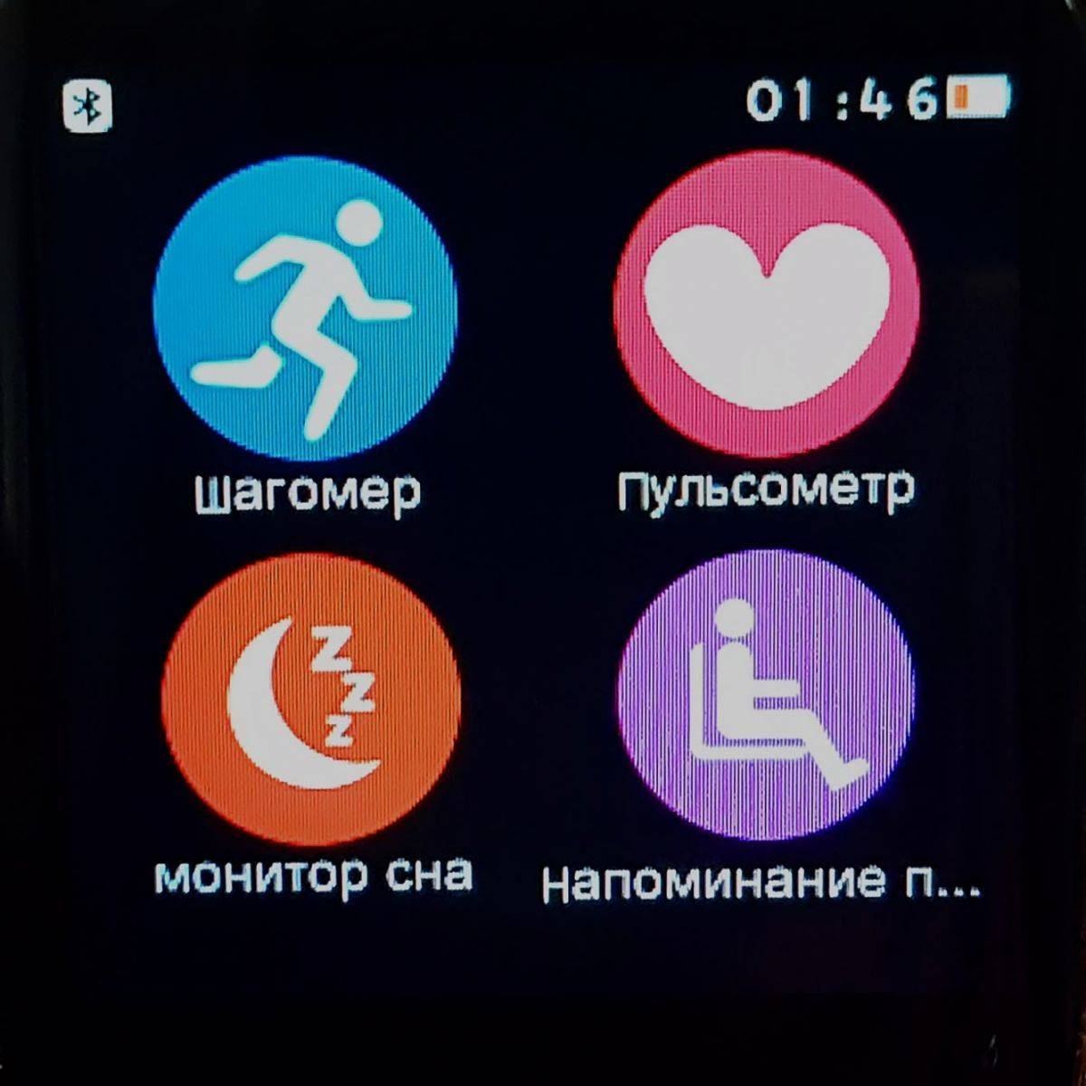 Расположение и количество пунктов меню на экране одинаковое – по 4 на каждом дисплее, больше не позволяют вместить размер часов U8.