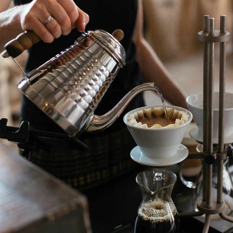 Метод приготовления кофе в пуровере по зрелищности сравнивают с чайной церемонией. Для заваривания используют кофе среднего помола. Понадобится оборудование фирмы Hario: воронка-пуровер, в которую вкладывают фильтр из бумаги, ткани или из мелкой металлической сетки и насыпают кофе. Воду нагревают в чайнике с длинным и узким носиком. Тонкой струйкой, двигая по кругу, проливают кофейный порошок на фильтре. Готовый напиток собирается в ёмкости, на которой установлен фильтр.