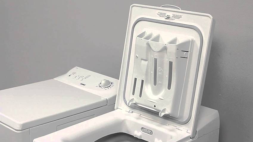 Машинки с вертикальной загрузкой оборудованы загрузочным люком, который находится на верхней панели. Как правило, он и занимает почти всю поверхность верхней крышки и имеет форму прямоугольника. Вертикальные устройства характеризуются значительно меньшими размерами, в отличие от фронтальных, потому их приобретают те люди, которым необходимо использовать рационально каждый сантиметр помещения. Необходимо учесть, что эти машинки открываются вверх, потому их нельзя выбирать для установки под умывальник или столешницу.