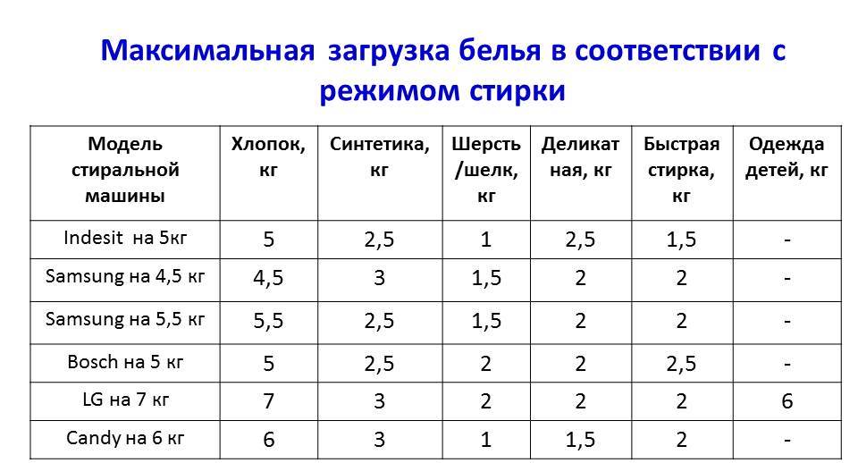 - примерный вес сухого белья для стиральной машины;