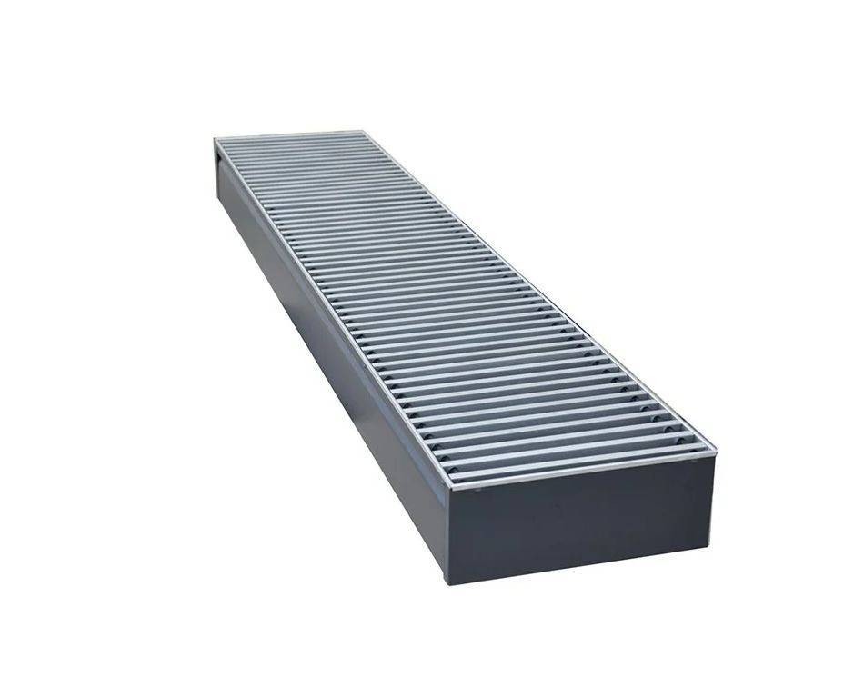 Прямоугольный корпус водяных конвекторов изготавливается, как правило, из нержавеющей стали. В верхней части прибора находится решетка, которая может быть как съемной, так и несъемной. Кроме того, некоторые конвекторы оборудуются специальной воздушной заслонкой, которая позволяет вручную регулировать количество воздуха, проходящее через прибор.